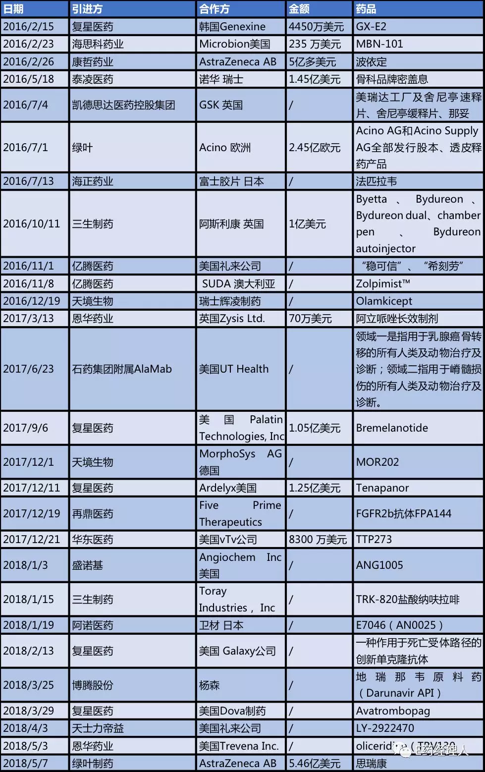 部分中国制药企业license-in案例