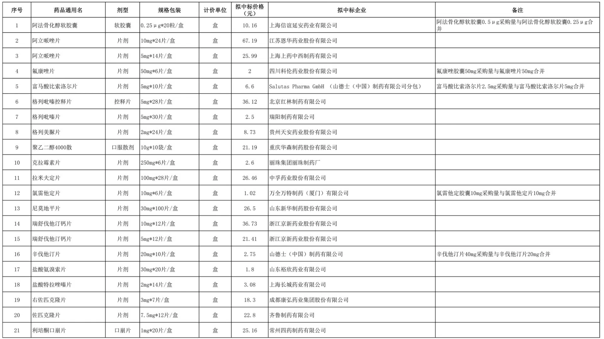 6月7日,上海阳光医药采购网发布《上海市医疗机构第三批集中带量招标采购拟中标结果公示》,自去年12月29日上海市医药集中招标采购事务管理所正式确定第三批带量采购招标品种目录至今,第三批带量采购涉及的21个品种29个品规终于尘埃落定,上海信谊延安药业有限公司的阿法骨化醇软胶囊(0.25μg*20粒)、浙江京新药业股份有限公司的瑞舒伐他汀钙片(10mg*12片及5mg*12片)等企业的品种拟中标。