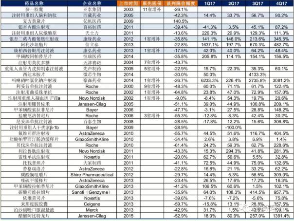 谈判药品2017年三季度销量逐季加速