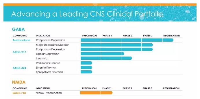 Sage Therapeutics的在研产品线(图片来源:Sage Therapeutics官方网站)