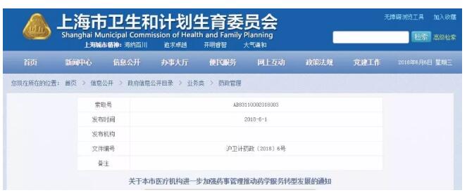 2018年6月1日,上海市卫计委正式发布《关于本市医疗机构进一步加强药事管理推动药学服务转型发展的通知》,指出:公立医疗机构在进行药房供应链优化过程中,须审慎设定与医药企业的合作模式,不应与有关企业开展药房“托管”或类似业务合作,防范合作可能带来的法律和政策风险。