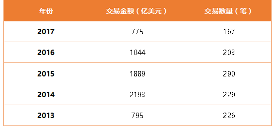 近五年全球生物制药并购情况