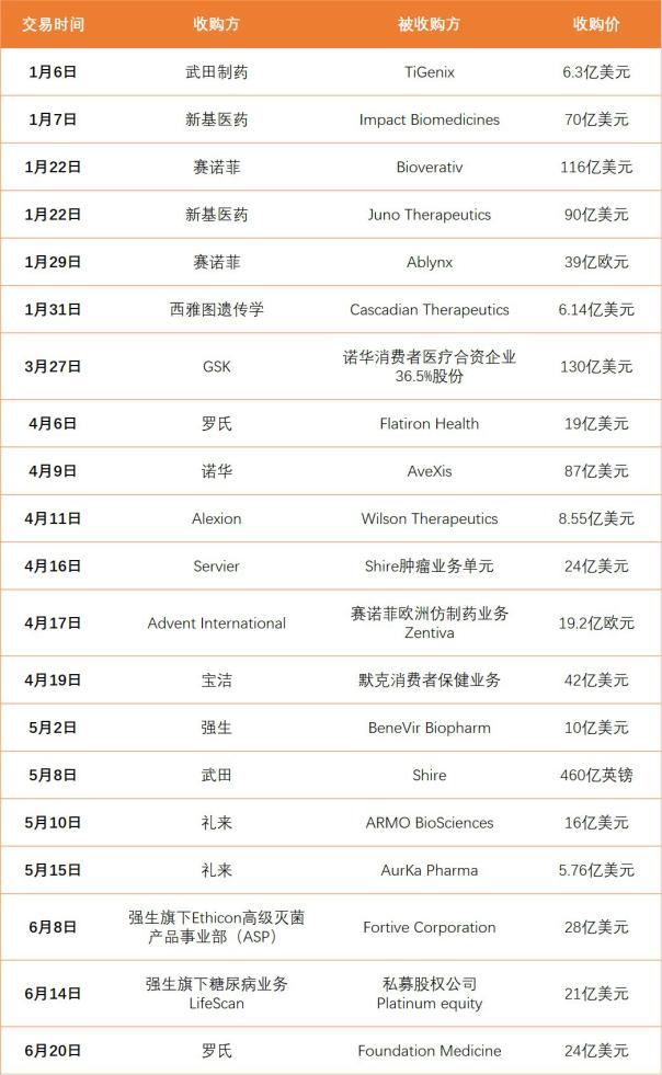 2018年生物医药重磅并购案例