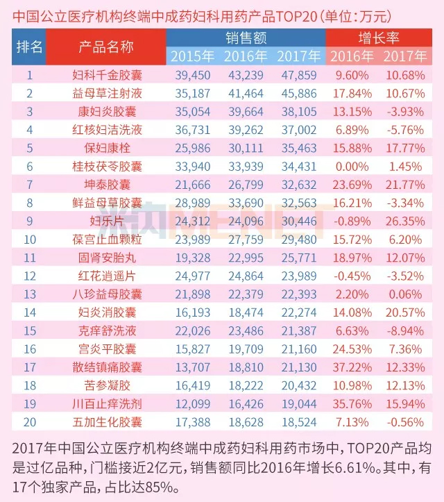 妇科中成药产品TOP20出炉!三年销售数据都在这里