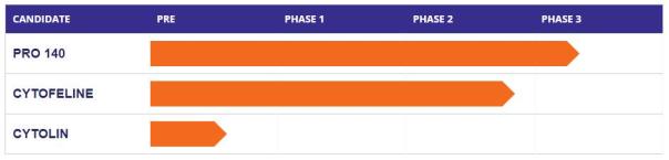 目前,PRO 140已经开展7项临床试验,每项临床试验都通过显着降低或控制人类受试者的HIV病毒载量来显示疗效。PRO 140被美国FDA指定为“快速通道”产品,并被授予孤儿药认定,用于预防移植物抗宿主病(GvHD)。与当前每日服用药物治疗相比,PRO 140抗体似乎是一种强大的抗病毒药物,潜在的副作用更少,用药频率更低。