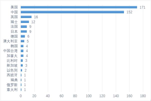 不同国家和地区CAR-T临床试验数量分布