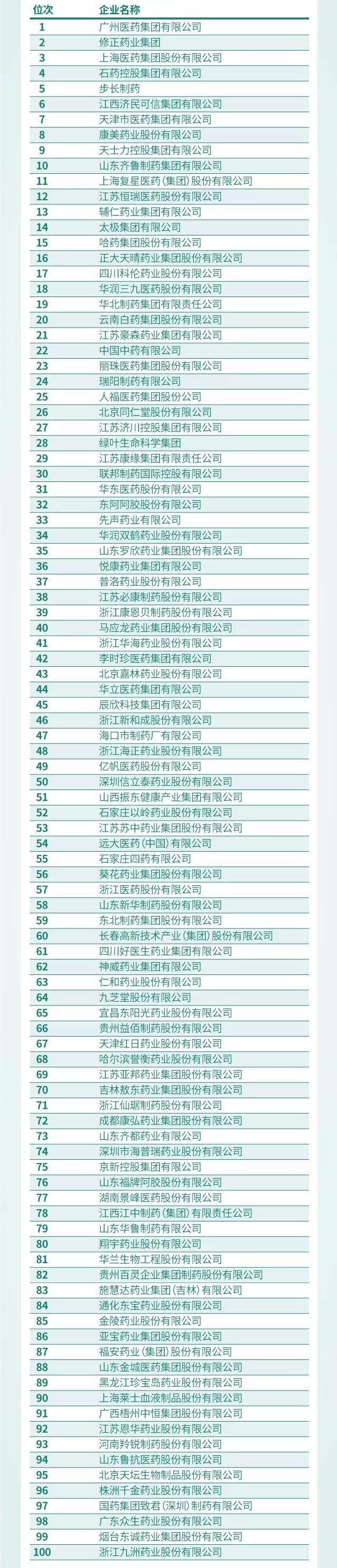 2017年度中国制药工业百强榜单