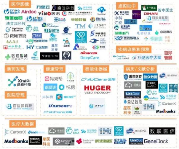 目前我国医学人工智能领域企业主要分为9类:医学影像、智能机器人、虚拟助手、药物研发、辅助诊疗、健康管理、语音交互、信息化管理、其他。