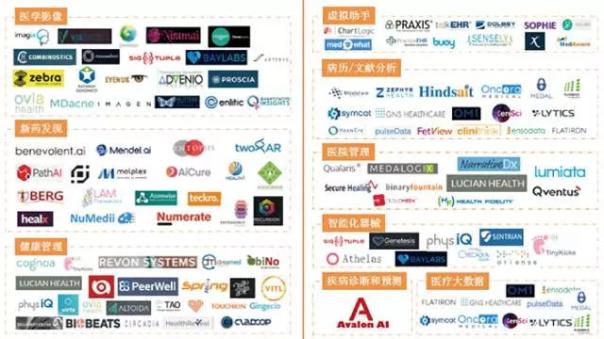 2017年统计数据显示,国内有83 家医疗领域的人工智能企业,主要布局在医学影像、病历/文献分析和虚拟助手三个应用场景,其中医学影像类的企业数量达到40 家,远高于其他应用场景的企业数量。国外109家医疗人工智能企业,布局的领域比较均衡。