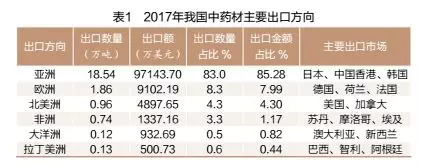 中药材主要出口方向为亚洲地区