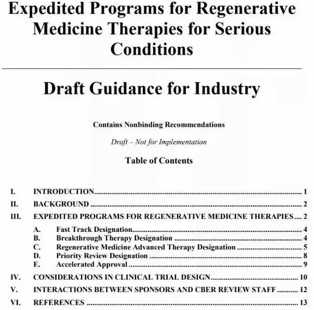 2017年11月发布的再生医学框架草案中,FDA提到将采取5种途径加快再生医学产品审批(图片来源:FDA官网)