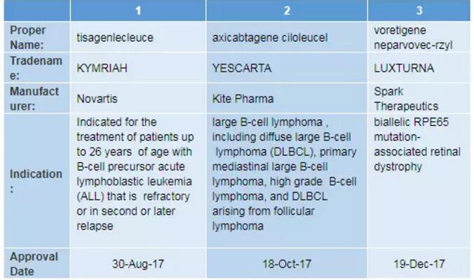 FDA批准的3种基因疗法(信息来源:FDA官网)