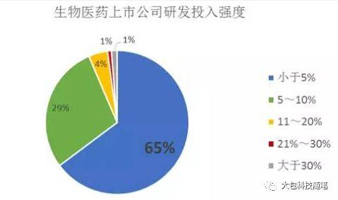 整体来看,A股上市生物医药公司的研发投入强度为2.36%,这还已经略高于中国在医药研发上的国家R&D经费的投入强度(与地区生产总值之比)。