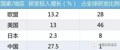 还是以“2016全球企业研发投入排行榜”为依据,先看一个大势,美国企业研发投入占全球的38.6%,其次是日本、德国和中国,中国占7.2%,不过中国的同比增幅是最迅猛的,这是值得欣喜的。