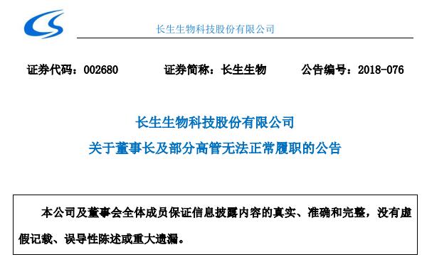 长生生物7月24日午间公告,7月23日下午15时,长春市长春新区公安分局对长春长生生产冻干人用狂犬病疫苗涉嫌违法犯罪案件立案调查,将主要涉案人员公司董事长、3名公司高管和2名中层人员带至公安机关依法审查。公司目前已紧急成立了应急小组、建立了相应应急机制。公司生产经营活动受到严重影响,股票可能实施其他风险警示。