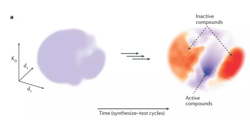 主动学习的机器学习模型能协助找到想要的分子,但我们需要足够的数据去训练这些算法(图片来源:《Nature Reviews Drug Discovery》)