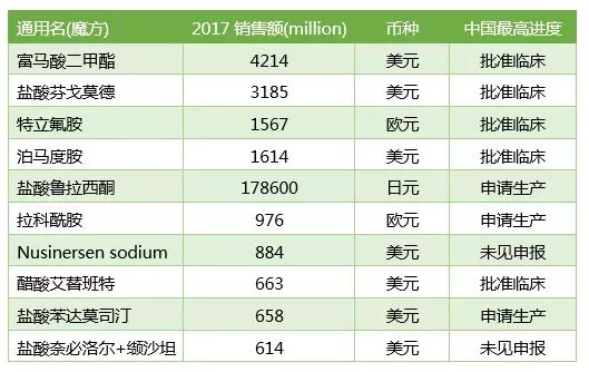 对于这些在中国无专利保护的品种,我们按照原研公司财报披露的销售数据进行排序,在此列举TOP10品种供大家参考。