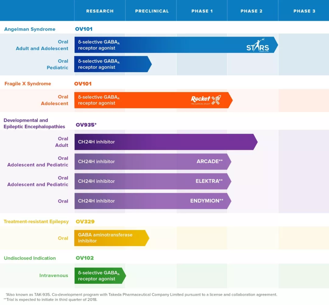 Ovid公司的临床管线(图片来源:Ovid公司官方网站)