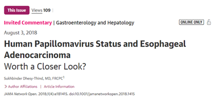 “这项研究对于突出HPV在EAC预后中的潜在作用非常重要,但是HPV作为治疗预测标志物的使用仍未得到证实,问题还很多。”加拿大麦克马斯特大学肿瘤科副教授Sukhbinder Dhesy-Thind在一篇相关评论中指出。