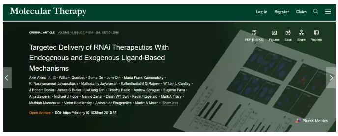 这篇论文彻底改变了RNAi疗法的进程(图片来源:《Molecular Therapy》官网截图)