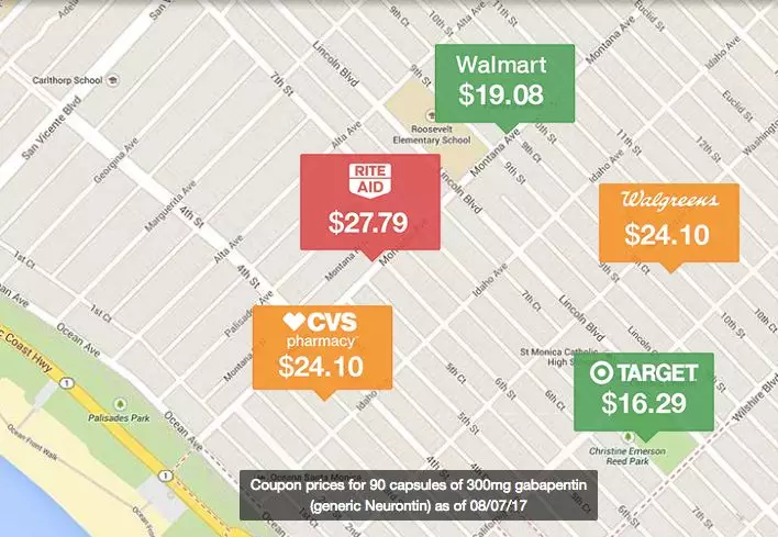 GoodRx提供的地图上的比价功能