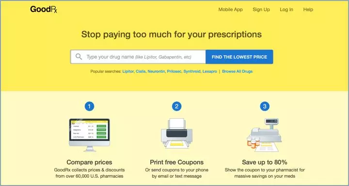 GoodRx的搜索页面辨识度非常强