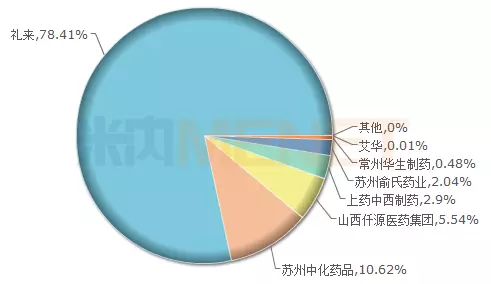 盐酸氟西汀胶囊由美国礼来公司研发,最早于1986年底在比利时上市。2017年在中国公立医疗机构终端盐酸氟西汀胶囊的销售额为1.18亿元,从氟西汀品牌格局看,原研厂家礼来的盐酸氟西汀胶囊(商品名百优解)占据大部分的市场份额,而此次通过一致性评价的中西制药只占据了2.9%的市场份额。