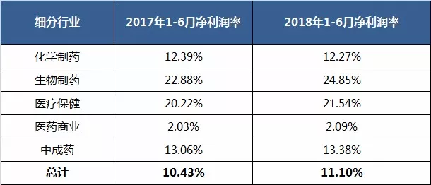 从细分行业赚钱能力来看,最强的是生物制药,连续两年净利润率均在22%以上,2018年更是大幅增长至近25%。