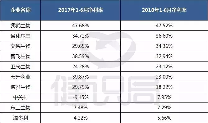 从已经公布业绩的10家生物制药公司的净利率来看,2018年有四家高于平均水平。排名第一的我武生物净利率竟接近50%,可见其赚钱能力之强。