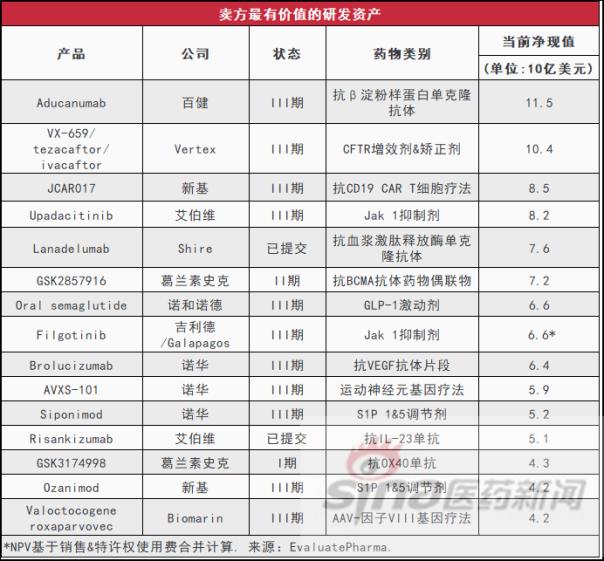 上述分析是针对大型生物制药公司开发的新药项目并基于EvaluatePharma达成共识的卖方预期NPV获得。