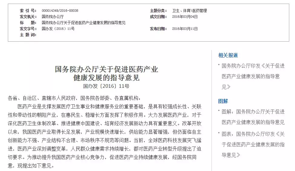 国务院下发《关于促进医药产业健康发展的指导意见》
