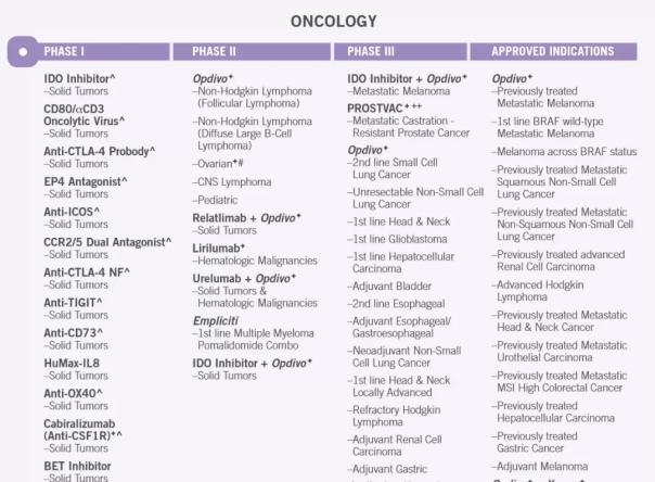 Opdivo 研发管线(来源:BMS 2017年财报)