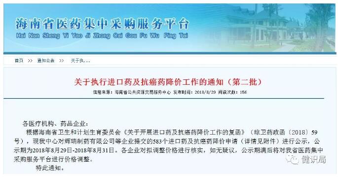 今天(8月29日),海南省公共资源交易中心发文,对辉瑞制药有限公司等企业提交的583个进口药及抗癌药降价申请进行公示。加上前一天已调价的19个国家谈判抗癌药,降价药品总量达到602个。