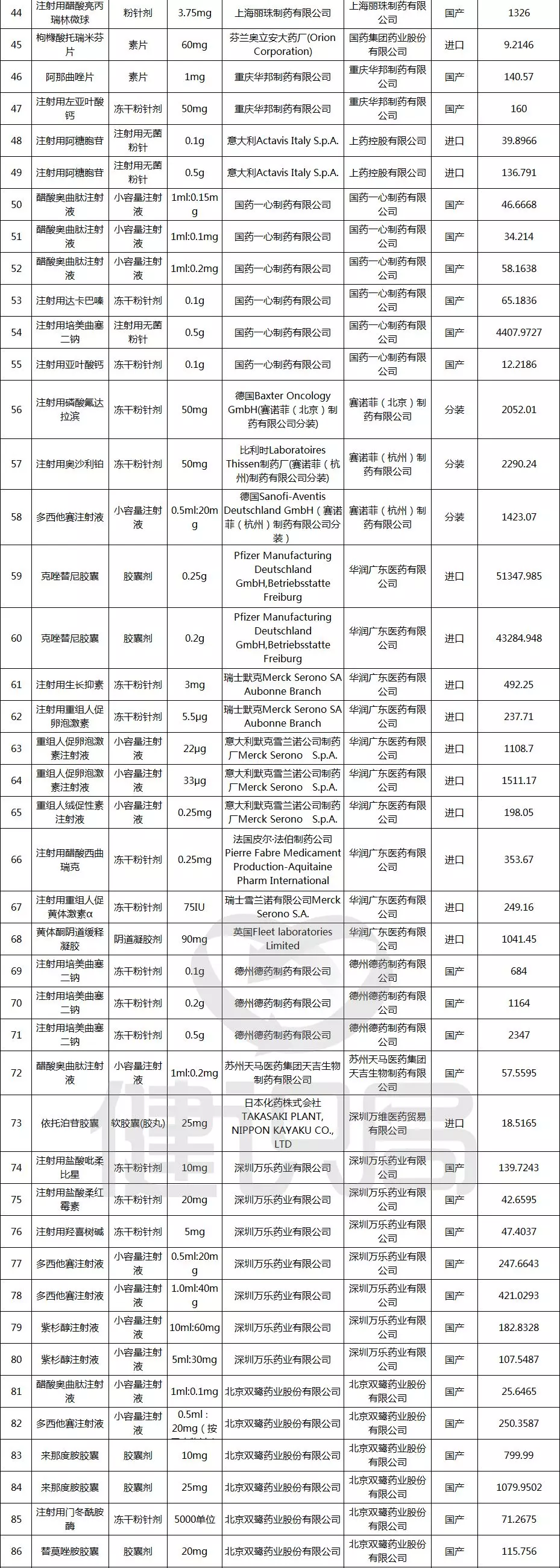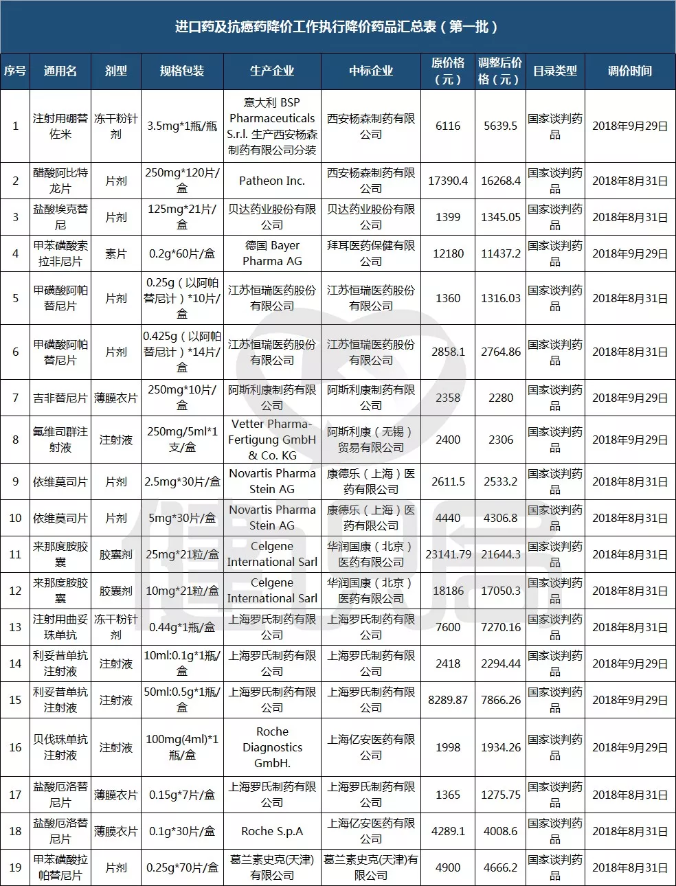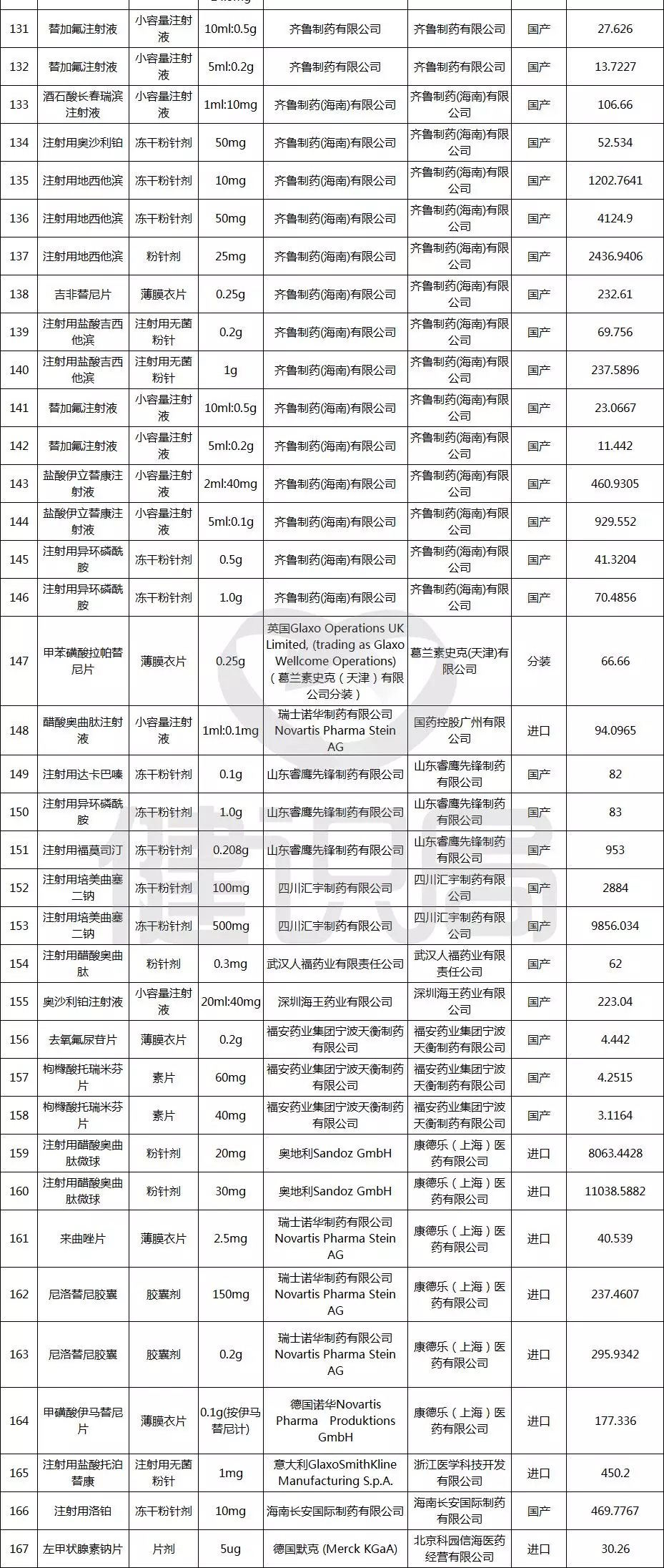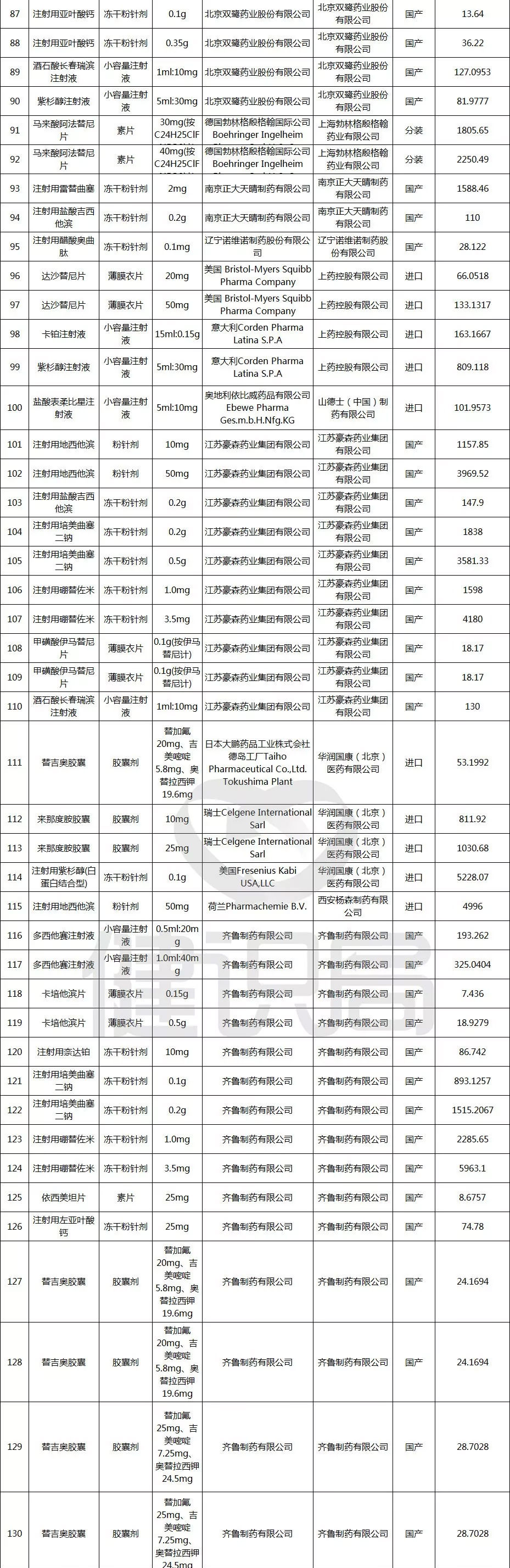 从品种看,新基的来那度胺胶囊、葛兰素史克的甲苯磺酸拉帕替尼片、诺华的甲磺酸伊马替尼片、默克的西妥昔单抗注射液等价格昂贵的进口抗癌药均在其中。