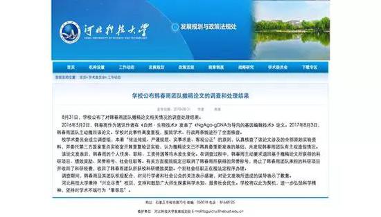昨天夜里,河北科技大学发布了韩春雨团队撤稿论文的调查和处理结果,千呼万唤始出来。