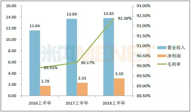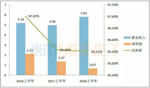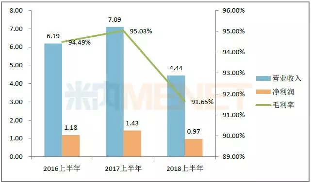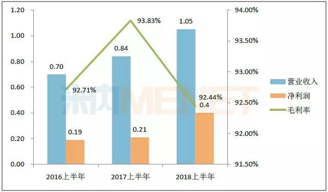 贝达药业的主要产品为盐酸埃克替尼,2018上半年埃克替尼销售继续放量,销量同比增长28.54%,营业收入同比增长16.70%,净利润同比下降51.36%。