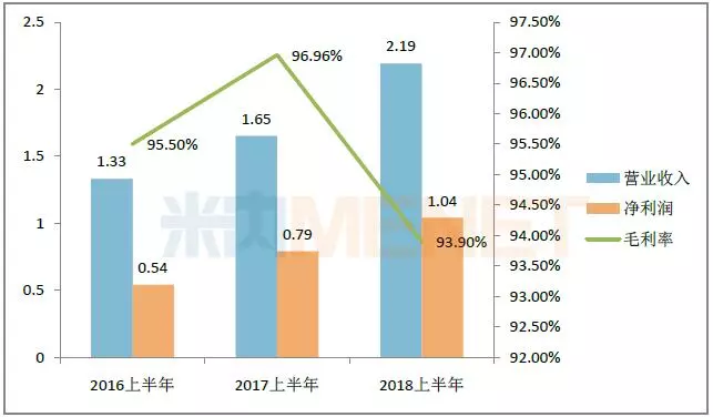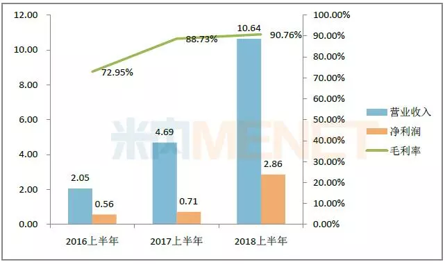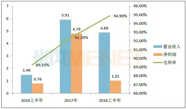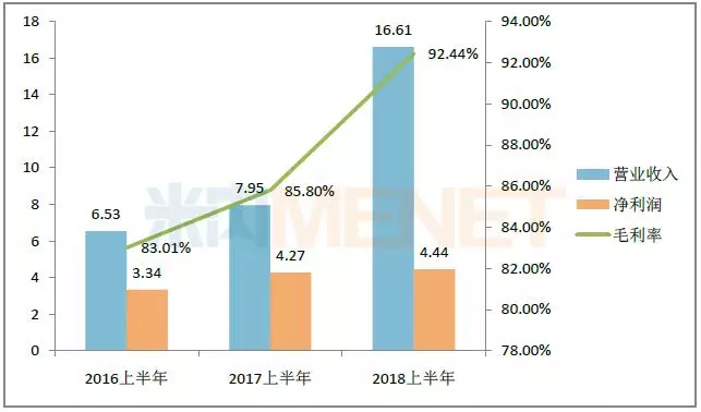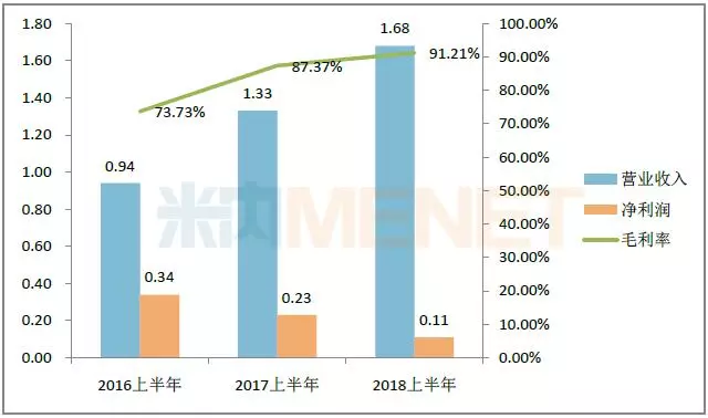 图1:2016-2018年同期贝达药业的业绩情况(单位:亿元)