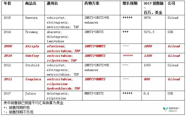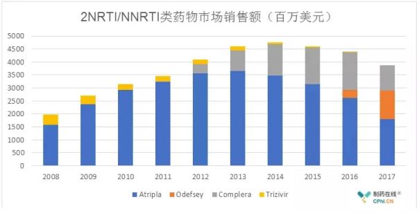 Delstrigo药物市场预期看衰,完全无法重现Atripla的曾经辉煌业绩,由于2NRTI/INSTI类药物市场份额的快速增加,Atripla 2017年销售额已下滑至18.06亿美金。