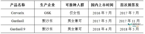 2016年7月,GSK的Cervarix疫苗在我国获批上市,由上海医药代理销售,这是国内首个获批上市的宫颈癌疫苗,填补了我国在这一领域的空白。随后,默沙东4价苗Gardasil、9价苗Gardasil 9相继于2017年5月、2018年4月分别获批上市。