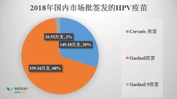 从2018年初至今,国内HPV疫苗的批签发数量共计499.07万支,包括149.18万支的Cervarix 疫苗、339.34万支的Gardasil疫苗及10.55万支今年新获批上市的Gardasil 9疫苗。从批签发数量来看,默沙东Gardasil疫苗占整个批签发总量的68%,是当前HPV疫苗市场中的主力品种,Gardasil 9疫苗凭借两次批签发占有2%的市场份额,GSK的Cervarix 疫苗占了整个HPV疫苗市场的30%。