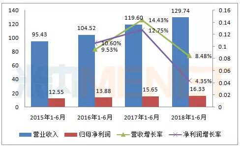 图3:2015-2018年同期马应龙药业业绩情况(单位:亿元)(来源:上市公司中报)