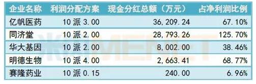 随着中报披露的落幕,不少“土豪”上市企业浮出水面。2018年上半年超过80家A股企业推出现金分红方案,其中,医药企业有5家,维生素龙头之一的亿帆医药最多,达3.62亿元,其次是同济堂2.88亿元,华大基因8002万元。