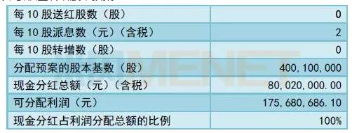 华大基因拟以截至6月30日总股本400,100,000股为基数,向全体股东每10股派发现金股利2.00元(含税),共分配现金股利8,002.00万元(含税),剩余未分配利润9,566.07万元结转以后年度分配。