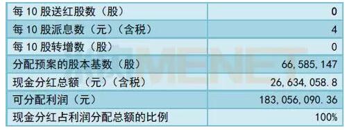 据明德生物2018年中报显示,以公司总股本66,585,147股为基数,向全体股东每10股派发现金红利4.00元(含税),合计派发现金红利2,663.41万元(含税),占净利润比例近7成。