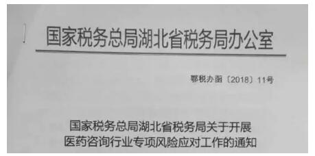 近日,业内流传一份国家税务总局湖北省税务局发布的《关于开展医药咨询行业专项风险应对工作的通知》(以下简称《通知》)。(原文件见附件)