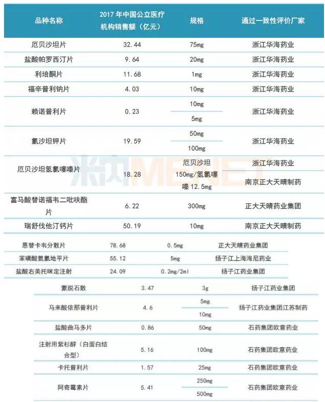 从通过一致性评价企业的情况看,浙江华海药业以7个品种成大赢家,中国生物制药、石药集团、扬子江均有4个品种。以上企业所涉及品种销售额大,有望成为本次采购的大赢家。