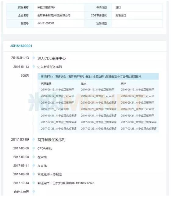 米拉贝隆缓释片审评时间轴(来源:米内网MED中国药品审评数据库2.0)