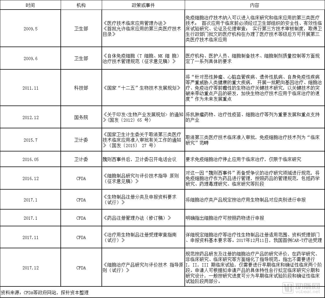 2017年12月22日《细胞治疗产品研究与评价技术指导原则(试行)》正式颁布。该《指导原则》指出细胞治疗临床试验设计与传统临床试验设计不同,申请人可根据拟申请产品的具体特性自行拟定临床研究分期和研究设计,一般按研究进度可分为早期临床试验阶段和确证性临床试验阶段,这将极大减少临床试验所需要的时间。同时,对于已有人体试验数据,可以有条件地免除不必要的动物试验,根据实际情况,不同程度接受非注册临床试验数据,这将加快细胞治疗产品在我国尽早上市。