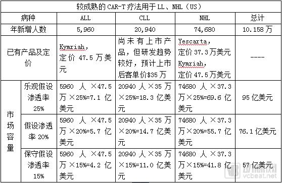 3.2.1 全美CAR-T市场预测:总容量约380亿美元,其中血液肿瘤约百亿美元