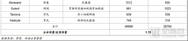 2018年4月,西南证券的一份研报提到“由于前20大抗肿瘤药的全球销量是美国销量的1.75 倍,所以我们认为全球血液瘤市场是美国市场的1.75 倍。”